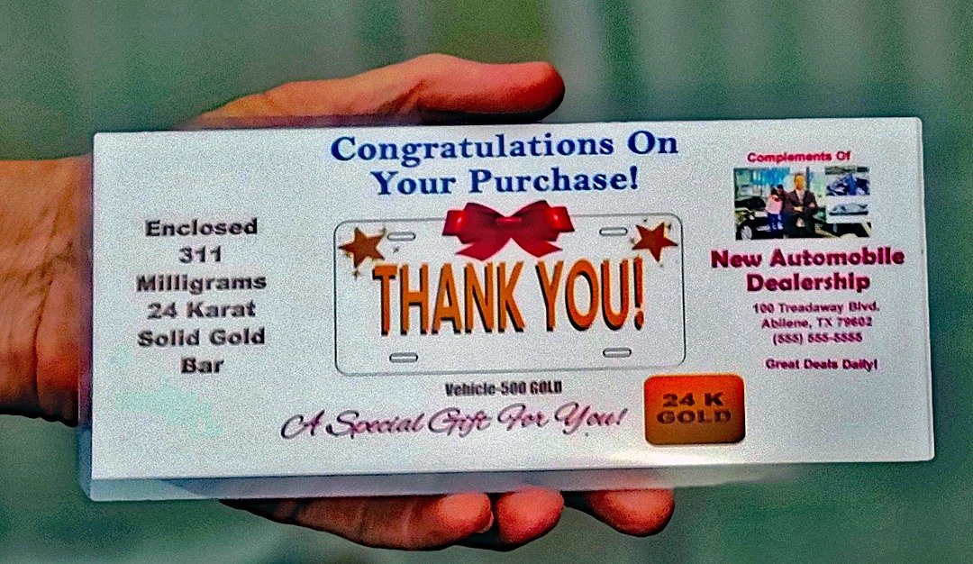Present your Auto Buyers and Home Buyers with a delightful gift of Gold or Silver that they can cherish and watch grow in value!